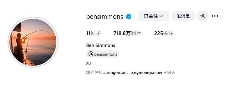 值得注意的是,西蒙斯近期将社交媒体头像更换为个人垂钓的照片。