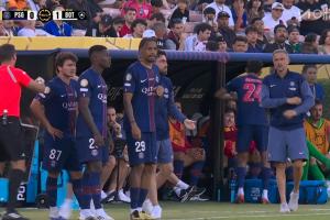 第55分钟,巴黎换上主力,门德斯、法比安、内维斯、巴尔科拉登场,马尤卢、卢卡斯、拉莫斯和埃梅里被换下。