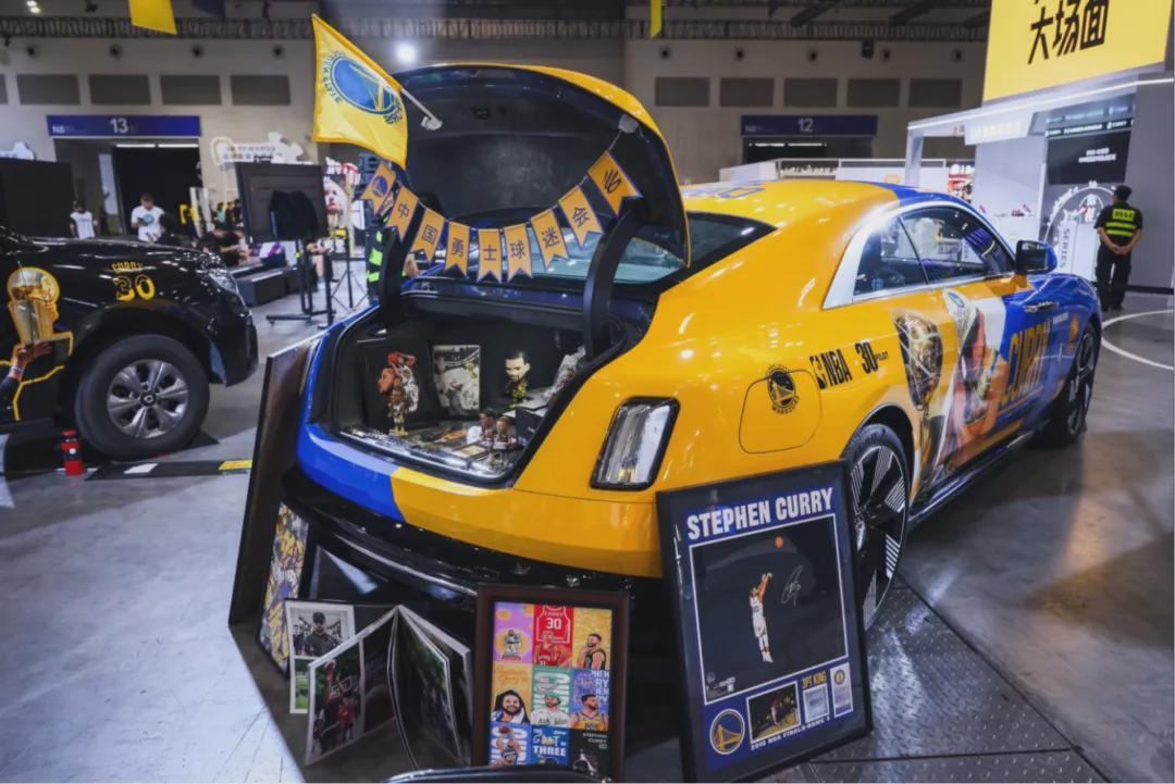 “痛车”后备箱市集更是壮观非凡,约10辆库里主题涂装的车子整齐排列,车型多样,从超跑到小货车应有尽有,展现了球迷们对偶像的无限热爱与创意。专业球迷们还带来了自己的收藏、艺术作品和自制周边,共同参与这场篮球文化的盛宴,让这里成为了篮球文化的交流与碰撞的舞台。