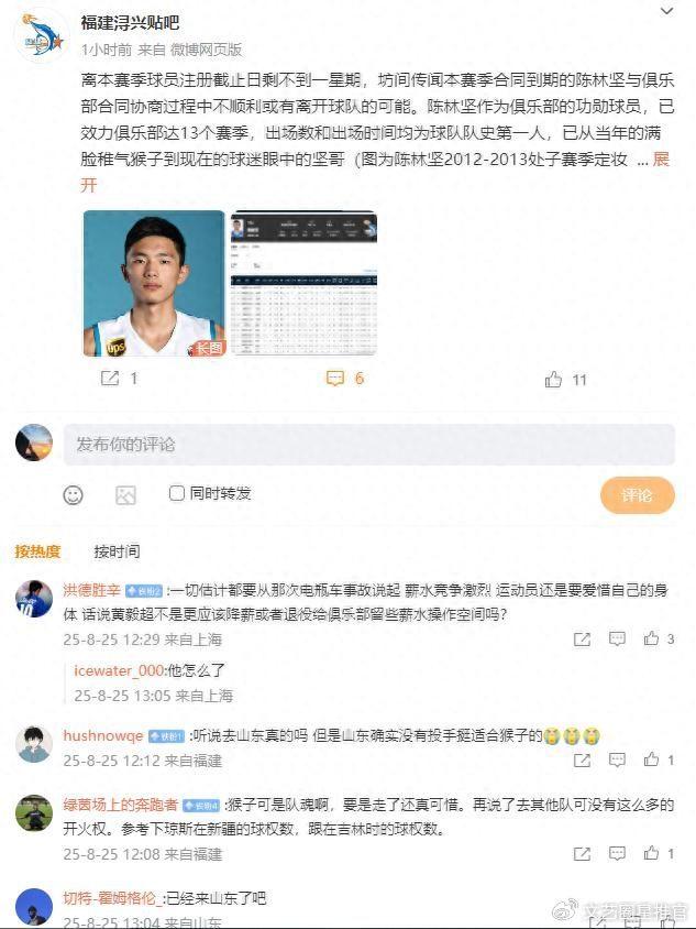 据消息人士透露,陈林坚与老东家福建浔兴俱乐部的谈判不太顺利,双方在合同金额上存在巨大分歧。有鲁媒透露,陈林坚已经加盟山东男篮,等待官宣。
